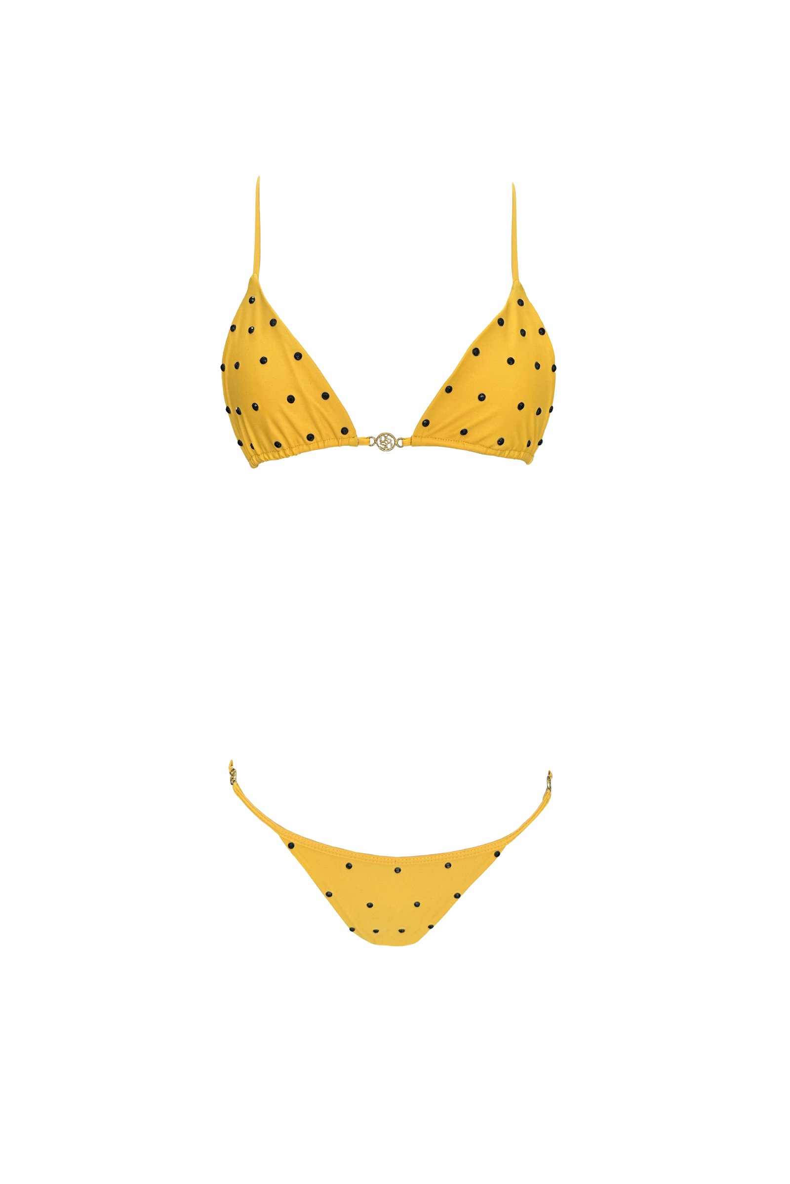 Bikini elaborado en lycra con aplicaciones de pedrería.