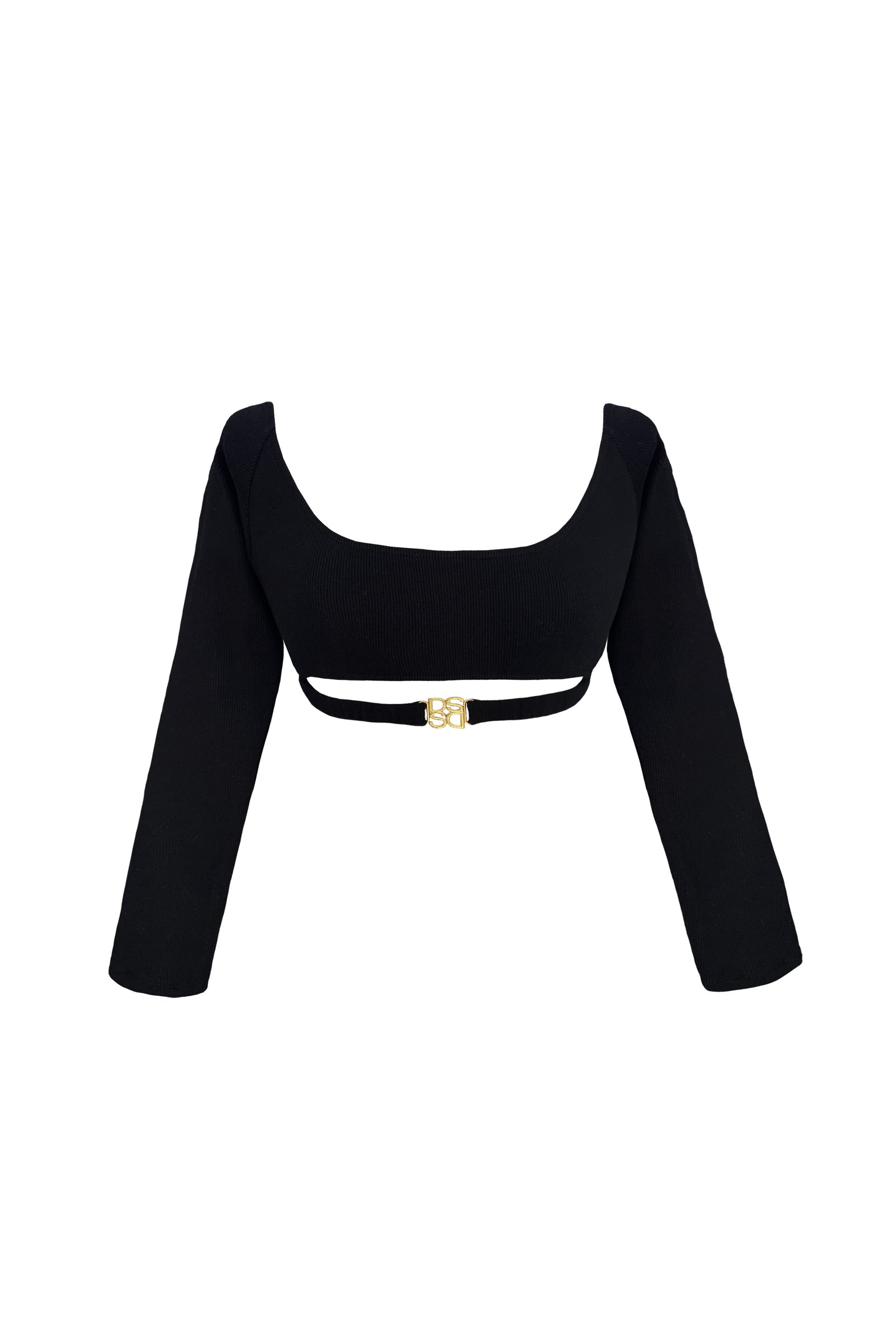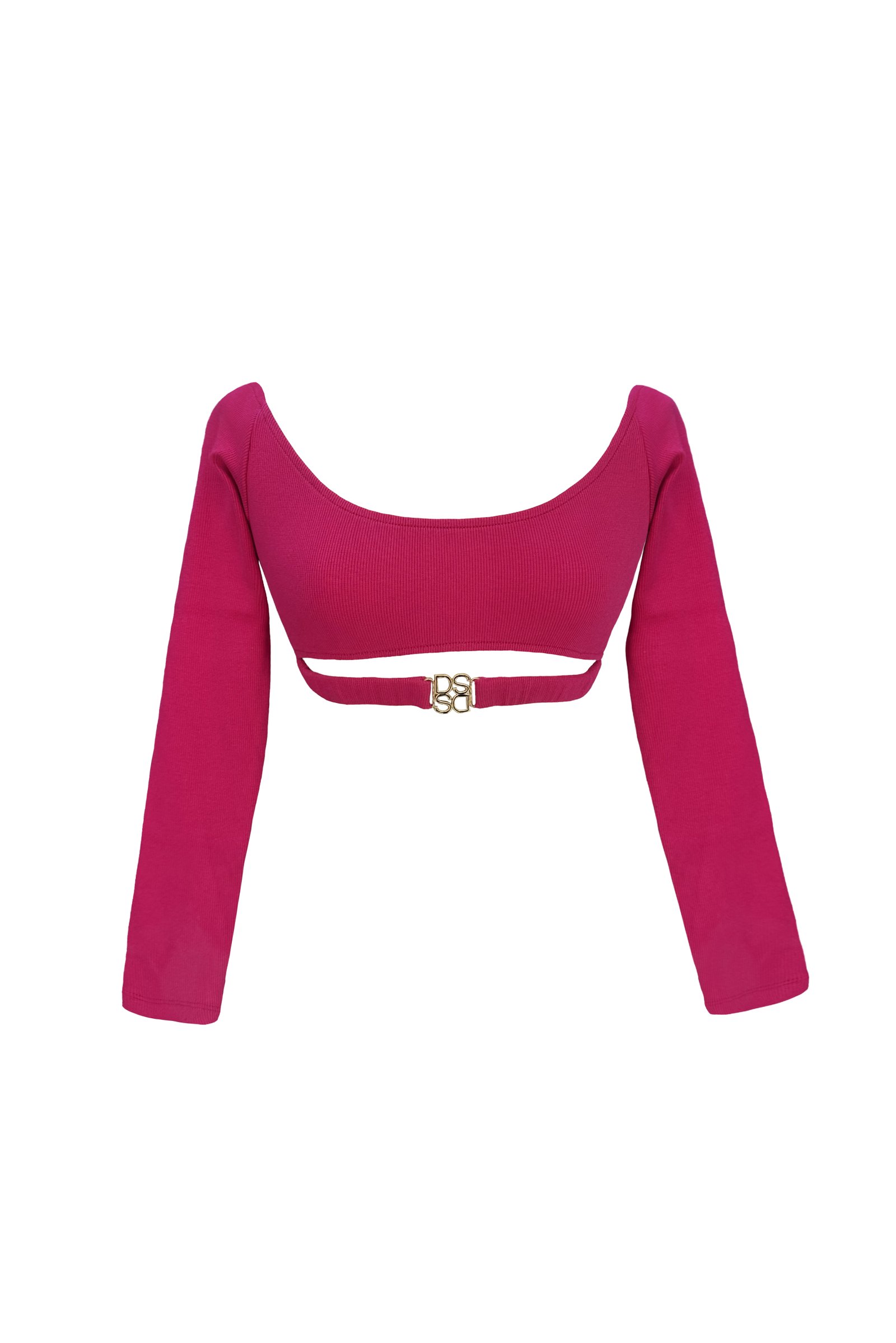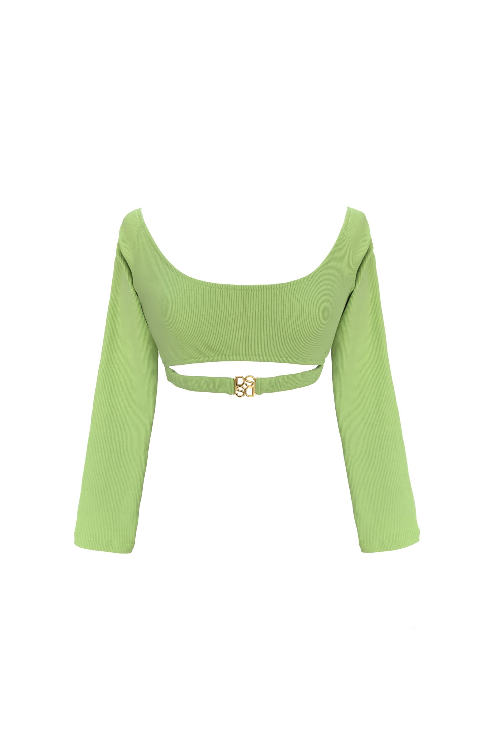 Crop top manga larga elaborado en algodón rib, con hebilla DS en pretina.