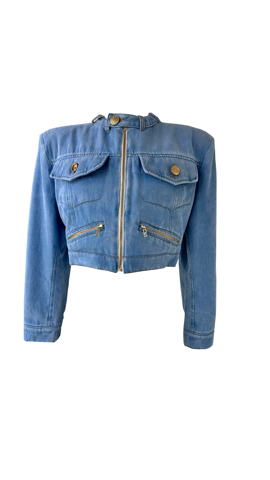 Chaqueta corta con hombreras y cierre delantero con cremallera. Elaborado en 100% algodón.
