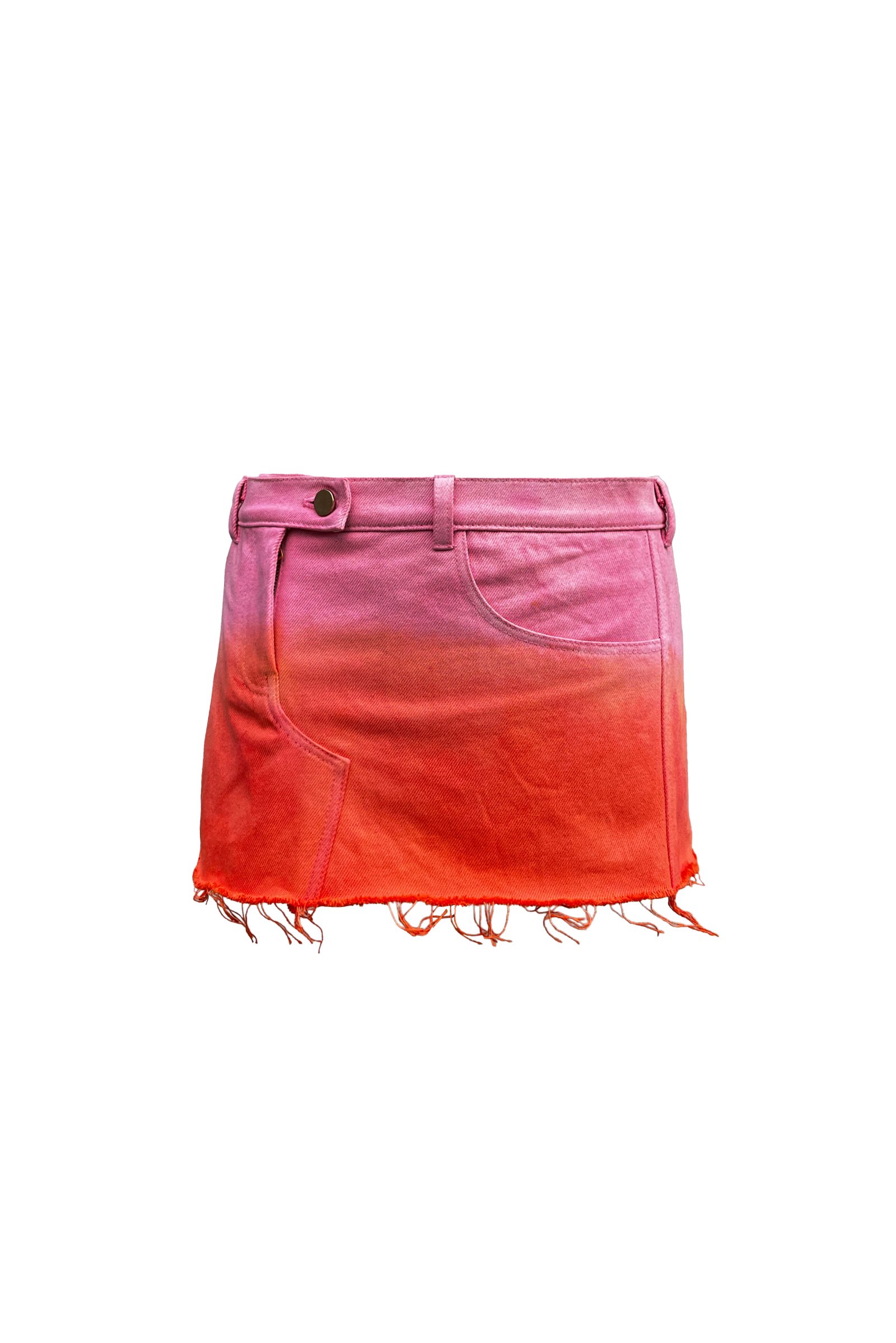 Falda mini con cierre de lado elaborada en denim 100% algodón y teñida artesanalmente con los colores del amanecer.