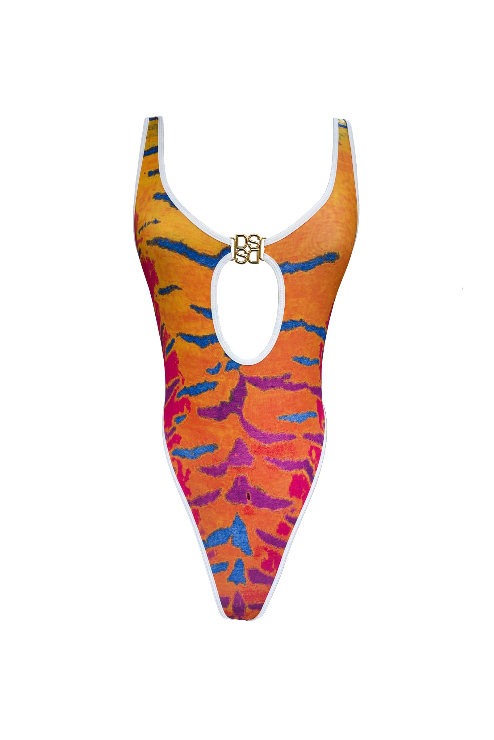 Ropa de baño entera con espalda corte olímpico, elaborada en lycra sublimada en animal print.
